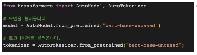 - transformers 모듈 사용하여 모델/토크나이저 불러오기