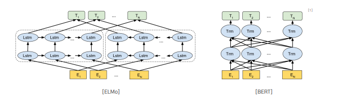 - ELMo의 경우 임베딩을 위해 각각의 독립적인 LSTM 모델을 사용 - BERT는 하나의 모델이 여러 방향으로 읽어 나가며 임베딩 수행 - BERT는 Transformer 모델을 통해 단어와 단어 사이의 관계를 파악