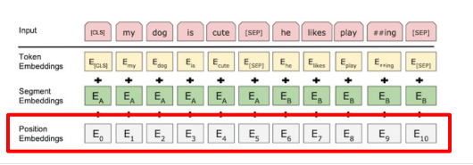- 단어의 위치 정보를 학습하기 위한 임베딩 - 문장의 최대 길이는 512로 고정 - 특정 값으로 초기화 된 이후에 학습 되어짐