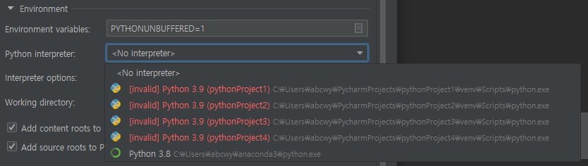 이 부분이 아나콘다로 설정되어잇는지 확인하기