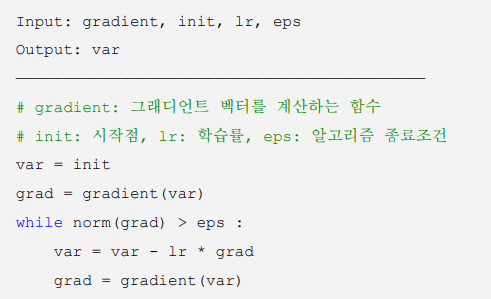 - 경사 하강법의 알고리즘 (in pseudocode)