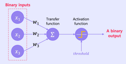 - 1957년 코넬 항공 연구소의 프랑크 로젠블라트에 의해 고안된 가장 간단한 형태의 Feed-Forward 네트워크 - 퍼셉트론 예시 : 이진수 입력, 이진수 출력, 스텝함수 - 단일 퍼셉트론만 가지고도 많은 것을 할 수 있음